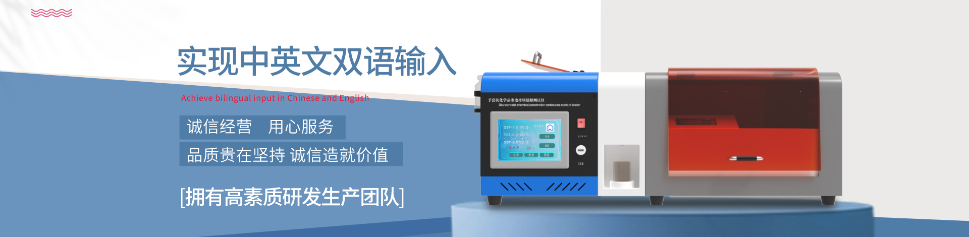 上?;諠詣踊O備有限公司致力于提供材料測試方面的實驗室整體解決方案,廣泛服務于纖檢、質檢、商檢、科研院所等企事業單位及各類實驗室。我們的產品有:魯爾圓錐接頭多功能測試儀、織物摩擦電荷量測試儀、皮膚縫合針彈性韌性測試儀、口罩細菌過濾效率測試儀、靜電衰減測試儀、百格十字刮擦測試儀、熱阻濕阻測試儀、強力機等三百多款產品涵蓋二十多個系列。公司以行業高素質的技術人才為根本,以的科學技術為依托,同時與國內大院校、科研院所、生產廠家密切合作。我們自創辦以來直以"科技興企,創新求實,客戶至上,真誠待人,踏實做...